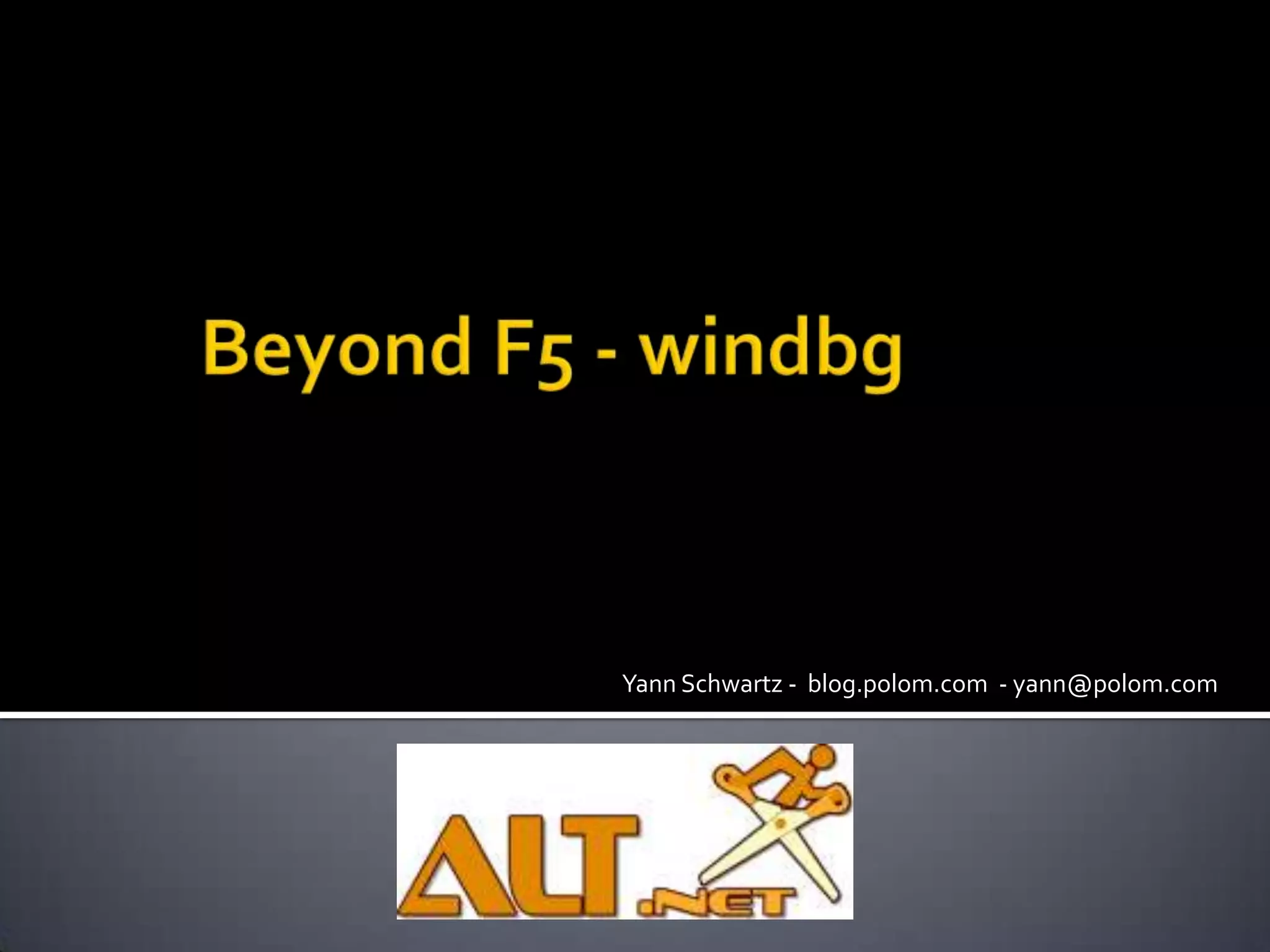 Le document présente une introduction aux outils de débogage pour Windows, notamment Windbg, CDB et KD, ainsi que leurs extensions comme SOS et SOSEX. Il fournit des commandes utiles pour diagnostiquer les performances des applications .NET, ainsi que des exemples d'utilisation de ces outils dans des scripts. De plus, une brève histoire des langages de programmation complexes est abordée, accompagnée de références à des ressources et blogs sur le sujet.