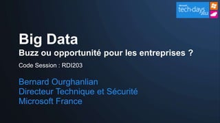 Le document présente les opportunités et défis du 'Big Data' pour les entreprises, mettant en lumière l'explosion des données et leur valeur potentielle pour la prise de décision. Il aborde les technologies qui facilitent l'analyse rapide et la création de sens à partir de données non structurées, ainsi que l'importance de la hiérarchie de la connaissance pour extraire de la valeur des signaux. La stratégie de Microsoft pour intégrer ces technologies dans ses produits est également discutée, avec un accent sur l'accessibilité et l'optimisation des outils d'analyse de données.