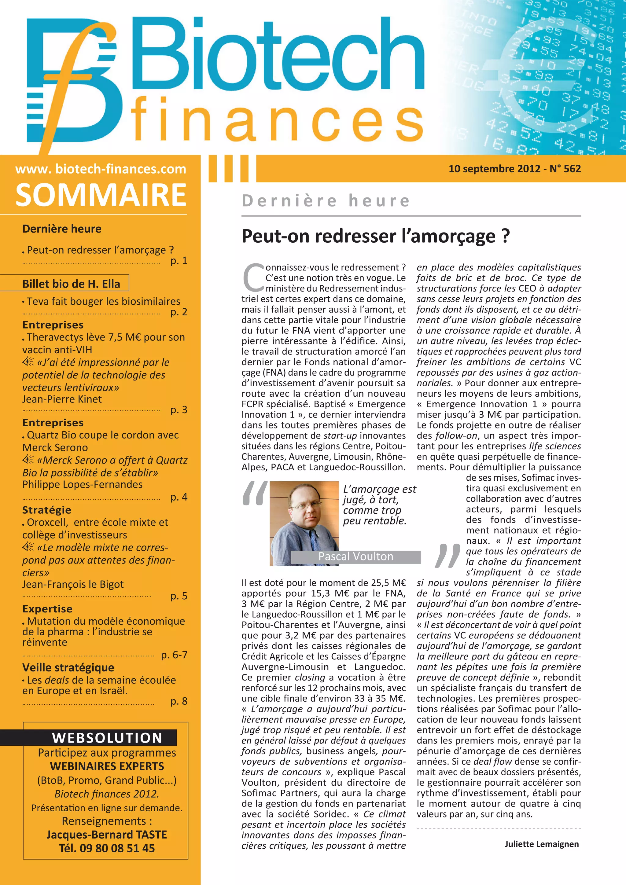 Le document aborde le financement et le développement de l'industrie biopharmaceutique en France, en mettant en avant les défis du redressement de l’amorçage et les initiatives comme le fonds 'émergence innovation 1'. Il mentionne des succès récents, tels que la levée de fonds de 7,5 millions d'euros par Theravectys pour son vaccin anti-VIH, et souligne la nécessité d'une collaboration entre divers acteurs du financement pour soutenir l'innovation. Enfin, il évoque l'évolution des biosimilaires aux États-Unis et les efforts des entreprises biopharmaceutiques pour naviguer dans un environnement réglementaire complexe.