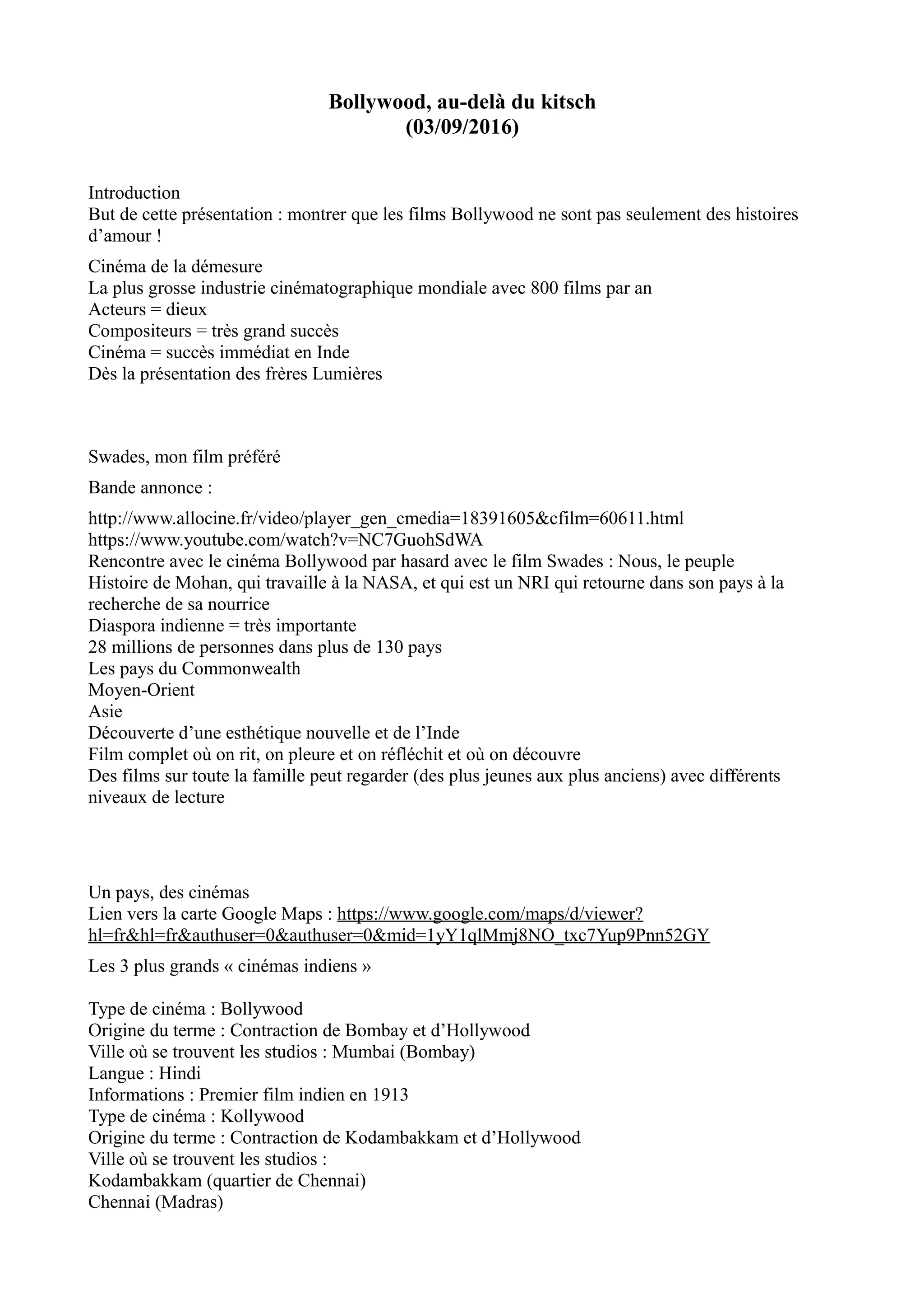 Cette présentation explore la diversité du cinéma bollywoodien, qui dépasse le simple récit romantique pour aborder des thèmes sociaux, culturels et familiaux. Des films emblématiques illustrent les tensions entre traditions et modernité, ainsi que les relations intercommunautaires en Inde. Le cinéma indien, considéré comme la plus grande industrie cinématographique mondiale, offre un panorama riche allant de l'humour et la musique à des récits dramatiques touchant des problématiques contemporaines.