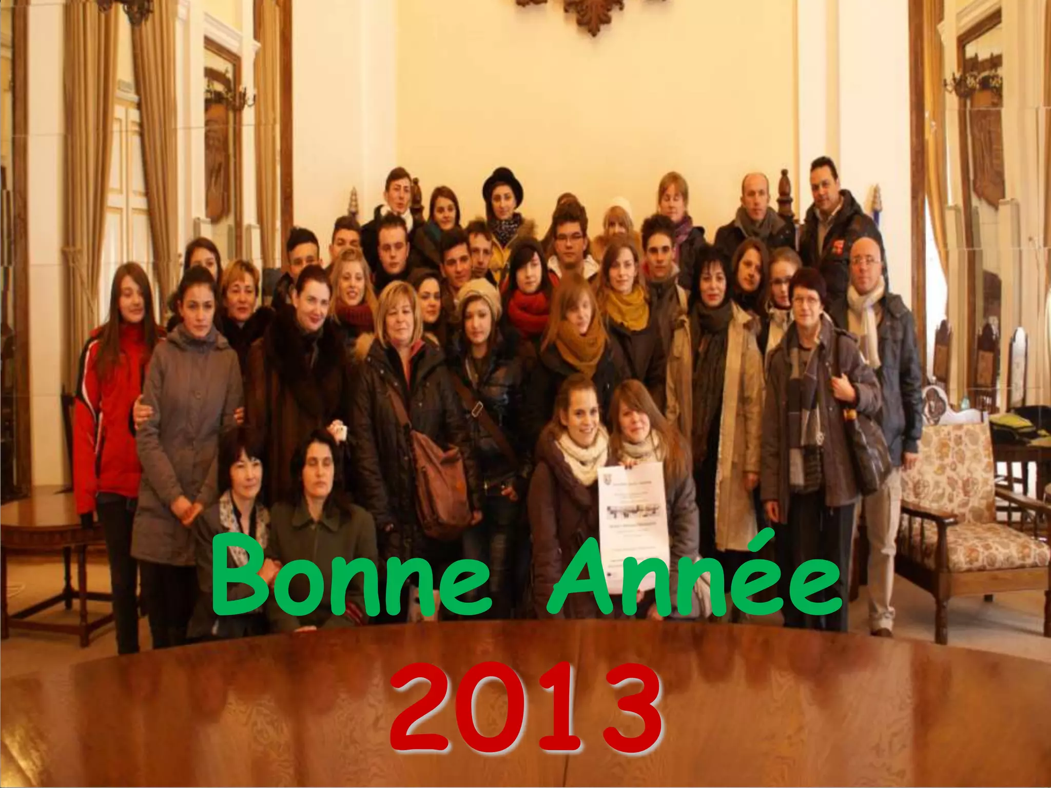 Le document présente des vœux de Nouvelle Année en plusieurs langues. Il souhaite à tous une merveilleuse année 2013. Les expressions incluent des souhaits en français, italien, polonais, espagnol et roumain.
