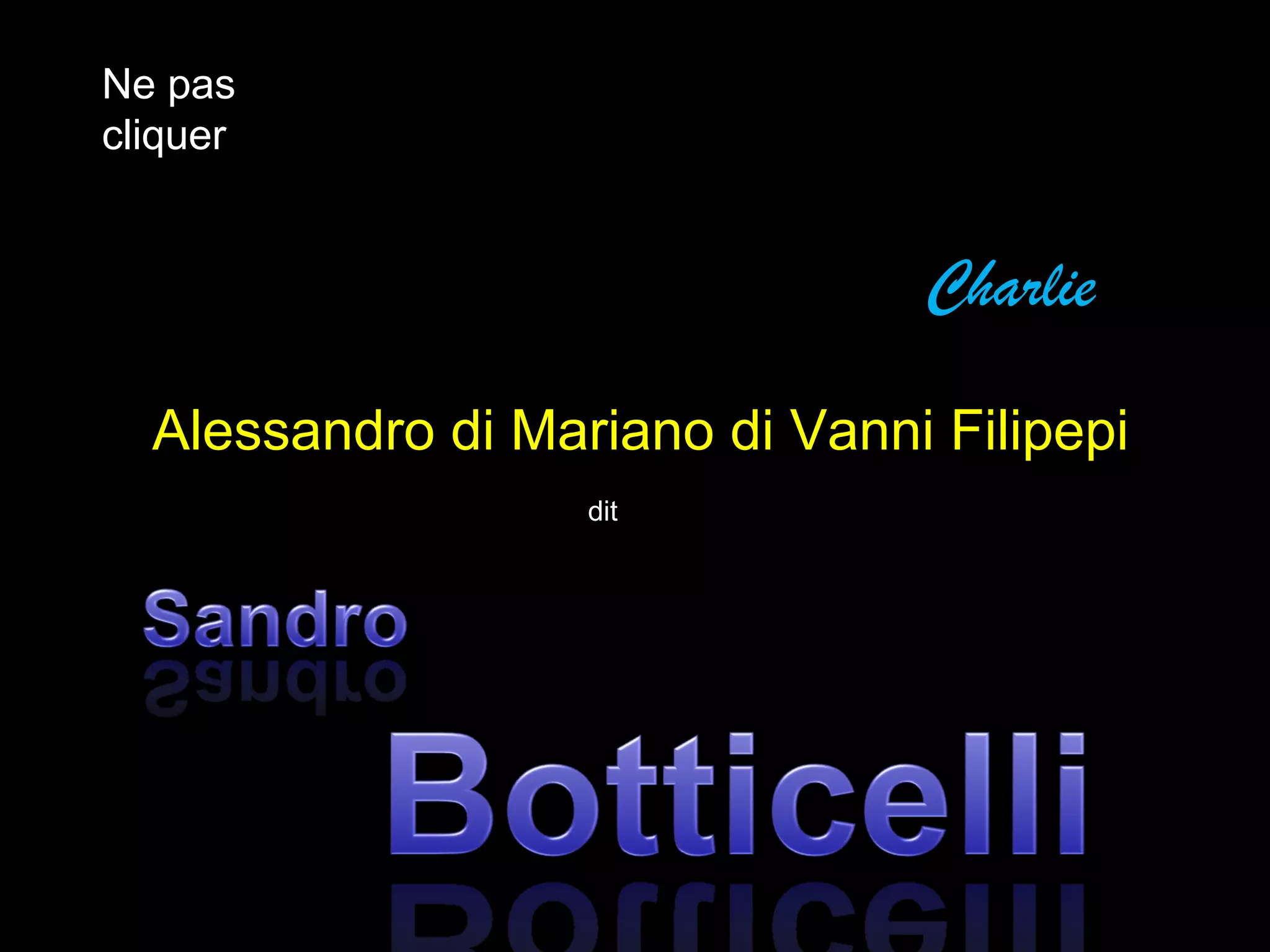 Alessandro di Mariano di Vanni Filipepi, connu sous le nom de Sandro Botticelli, est un peintre italien de la Renaissance, né en 1444 et mort en 1510. Il est célèbre pour ses œuvres inspirées de la mythologie grecque et pour sa capacité à représenter la beauté et la mélancolie, se distinguant par son approche intellectuelle à un public cultivé. Ses tableaux emblématiques incluent 'La Naissance de Vénus' et 'Le Printemps', mettant en avant les influences de la cour des Médicis.