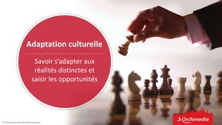 Le document aborde les stratégies de marketing et de branding nécessaires pour réussir sur le marché chinois, en soulignant l'importance de l'adaptation culturelle. Il discute des différences entre les attentes des consommateurs en Chine et en Occident, et recommande d'adapter les noms, images, approches marketing et canaux de communication. L'accent est mis sur l'usage des médias sociaux et des plateformes d'e-commerce pour atteindre efficacement le public chinois.