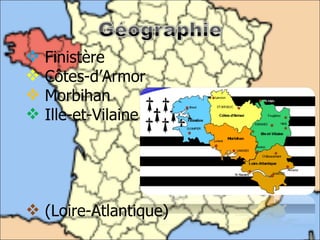 Le document évoque des éléments culturels bretons tels que des dialectes, des costumes traditionnels et des spécialités culinaires. Il mentionne également le bagad de Lann-Bihoué et un match de football de l'équipe de Bretagne contre le Cameroun en 1998. La devise citée est 'plutôt la mort que la souillure'.
