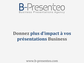L'agence b-presenteo se spécialise dans l'accompagnement pour des présentations business à forts enjeux, en mettant l'accent sur la préparation du contenu et de la forme. Elle offre des services de conception, réalisation de supports et de formations pour aider les clients à devenir autonomes dans l'art de délivrer des présentations percutantes. Leur expertise vise à répondre aux besoins des investisseurs, collaborateurs et clients pour optimiser l'impact des présentations dans divers contextes.