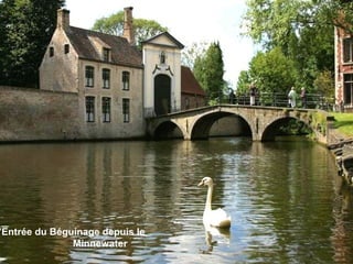 Le document décrit une promenade à Bruges, mettant en avant des lieux emblématiques tels que le béguinage et les canaux. Il évoque également le musée Memling situé à l’hôpital Saint-Jean. Des détails sur des œuvres artistiques comme la châsse de Sainte Ursule sont également mentionnés.