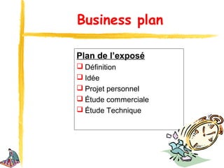 Le document présente une méthodologie détaillée pour l'élaboration d'un business plan, en commençant par la définition et la vérification de l'idée de projet, suivies par l'étude commerciale et technique. Il souligne l'importance de la connaissance du marché et des contraintes personnelles et légales, ainsi que la nécessité d'analyser la demande et l'offre pour établir une stratégie marketing efficace. Enfin, le document aborde le positionnement, la stratégie de prix, de distribution et de communication qui doivent être adaptés pour répondre aux besoins du marché ciblé.