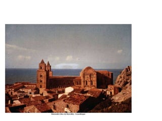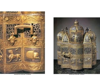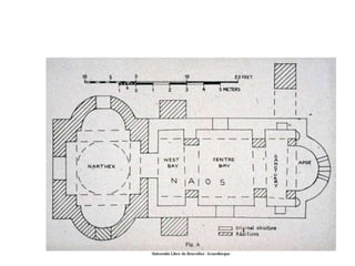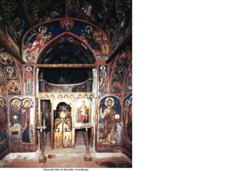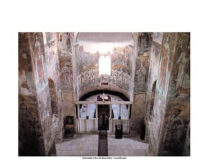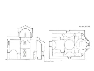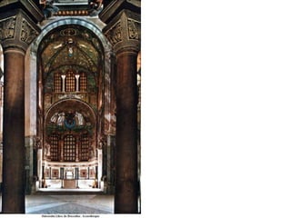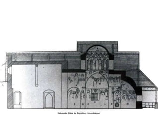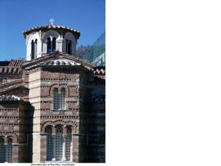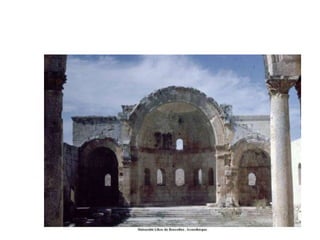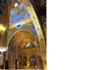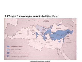 Le document traite de l'architecture et de l'art byzantins, en mettant l'accent sur les églises, basiliques, mosaïques et iconographies du christianisme entre le IVe et le VIIIe siècle. Il explore des exemples significatifs d'édifices religieux, de fresques et de mosaïques, ainsi que des influences stylistiques et iconographiques à travers différentes régions de l'Empire byzantin. Les détails incluent des monuments célèbres comme Sainte-Sophie à Constantinople et des œuvres d'art emblématiques, illustrant l'évolution du style byzantin et la richesse de son héritage artistique.