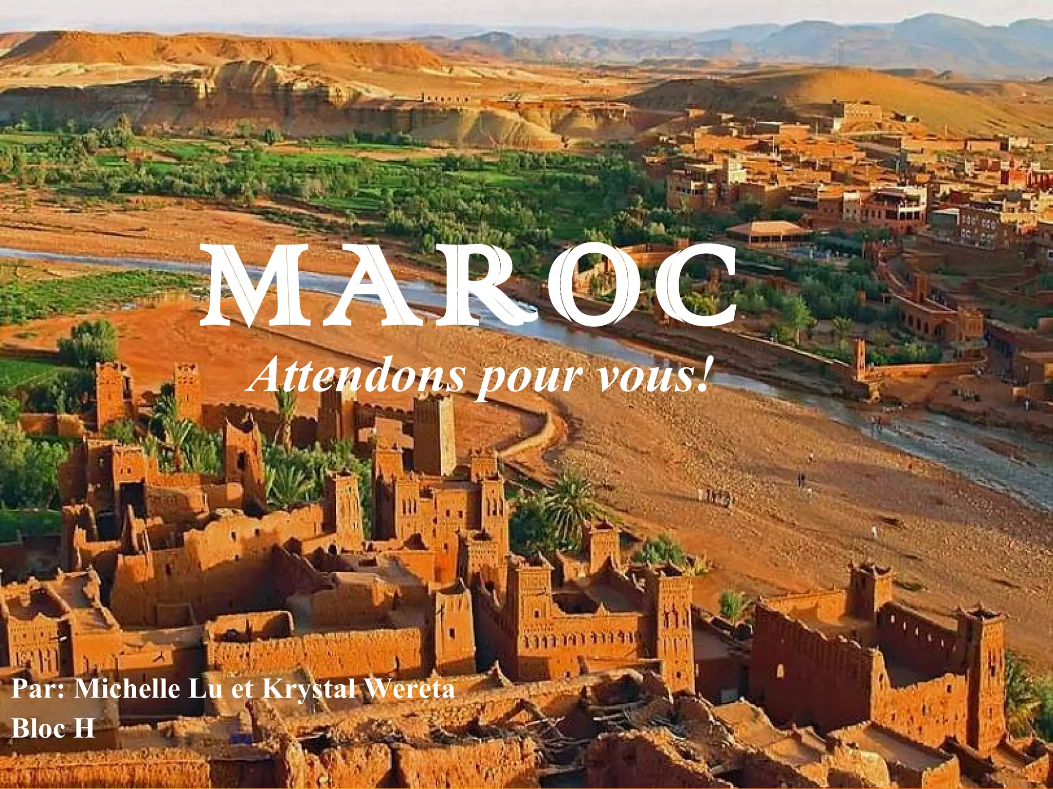 Le Maroc est un pays d'aventure avec une population d'environ 33 millions d'habitants, où l'arabe est la langue officielle. Les principales attractions touristiques incluent les Gorges du Todra, le désert du Sahara et Casablanca, tandis que la culture est riche en traditions vestimentaires et en gastronomie, avec des plats typiques comme la pastilla et le tajine. Les festivals locaux, tels que le Moussem de cerises et le Festival national des arts populaires, mettent en avant la musique, la danse et l'art.