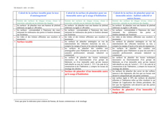 Le document détaille le calcul des surfaces taxables pour la taxe d'aménagement, incluant des spécificités pour les maisons individuelles et les immeubles collectifs. Il définit les critères tels que les surfaces de plancher sous une hauteur minimale et les espaces de stationnement. Des précisions sont également apportées sur les surfaces non aménageables et les locaux techniques, ainsi que sur les règles relatives aux immeubles mixte et commerciaux.