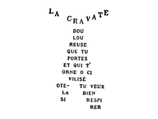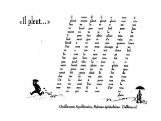 Le document traite des calligrammes d'Apollinaire, une forme de poésie visuelle où les mots sont disposés de manière à créer une image en rapport avec le contenu. Il semble s'adresser aux amateurs de poésie et de littérature. Le texte inclut également des remerciements et une promesse de retrouvailles futures.