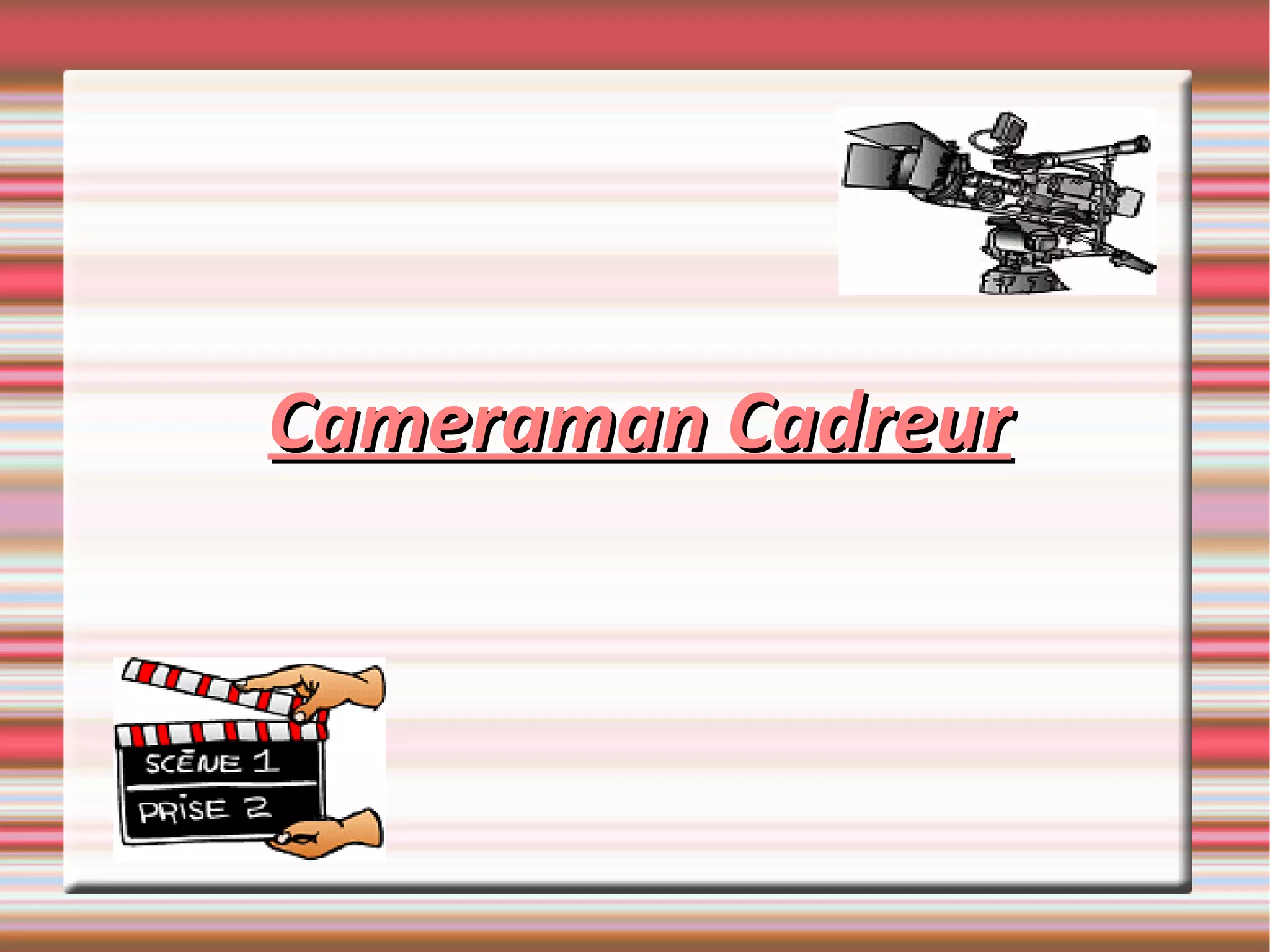 Le cadreur, travaillant sous la direction du réalisateur et du directeur de la photographie, est responsable de la mise en marche de la caméra, du cadrage, de la netteté de l'image et de la mobilité de la caméra. Ce métier nécessite de l'humilité, de la confiance en soi et une capacité à collaborer en équipe. Un parcours académique dans le domaine de l'audiovisuel est recommandé, allant de Bac +2 à Bac +6.
