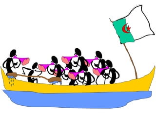 Une équipe algérienne de canoé perd face à une équipe japonaise en raison d'une mauvaise structure de gestion, ayant trop de capitaines et pas assez de rameurs. Après des ajustements organisationnels et une motivation accrue, l'équipe algérienne subit néanmoins une nouvelle défaite. Actuellement, la société algérienne envisage d'améliorer son matériel de canoé pour les futures compétitions.
