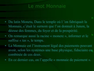 Ce document explore les concepts fondamentaux de la monnaie, de la finance et de l'économie, en définissant ces termes et en décrivant les différentes phases et sources de financement d'une entreprise. Il met en lumière l'importance de la capitalisation, des titres financiers, et des acteurs de la communauté financière dans le processus de levée de fonds, tout en soulignant le rôle crucial de l'entrepreneur dans ce contexte. Enfin, il aborde les enjeux et compétences nécessaires pour réussir dans le domaine du financement d'entreprise.