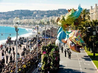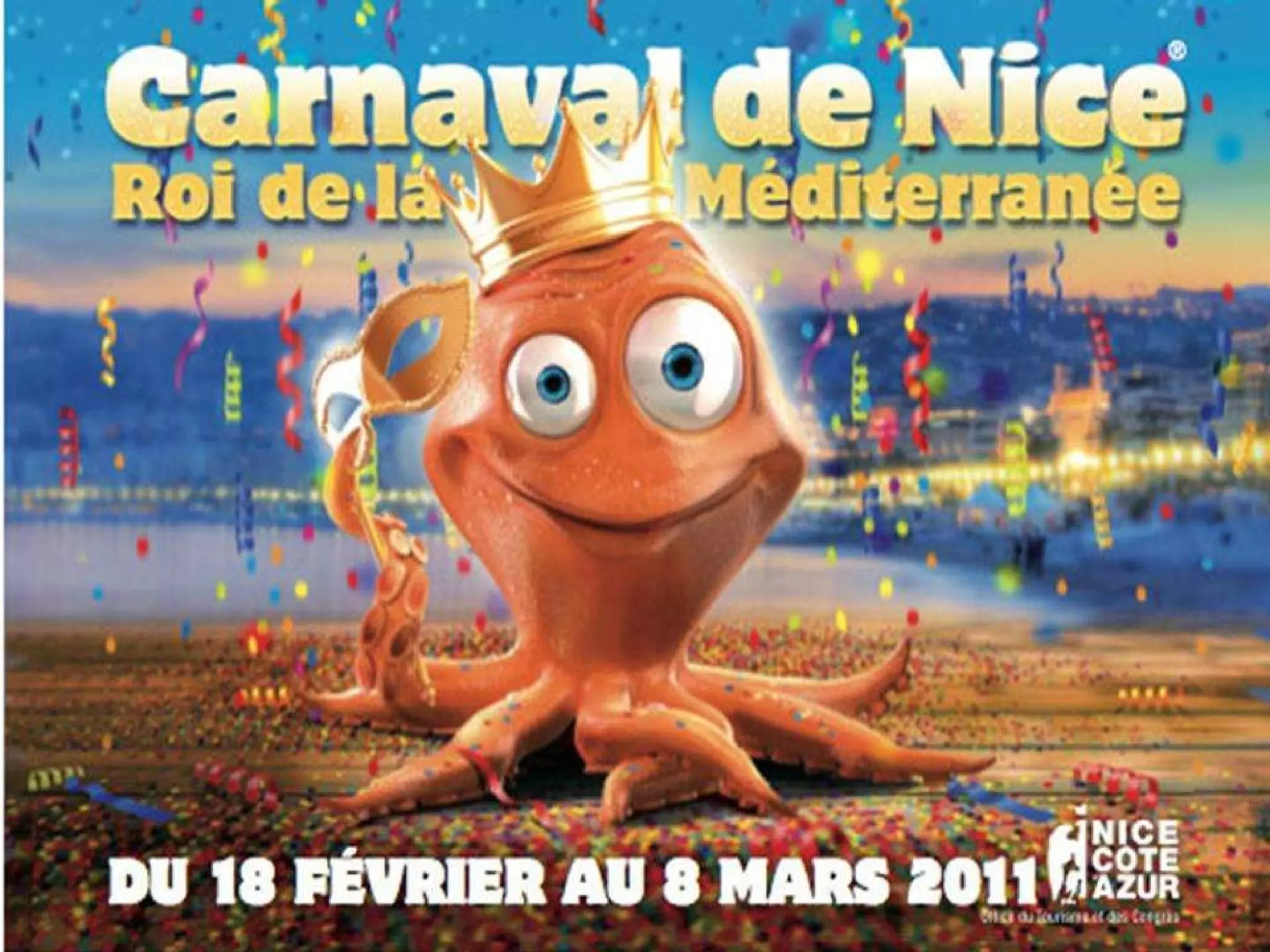 Le carnaval de la Côte d'Azur, l'un des plus grands au monde, se tiendra du 18 février au 8 mars 2011, avec des défilés de chars sur le thème du 'roi de la Méditerranée'. Les festivités incluront des batailles de fleurs sur la Promenade des Anglais, où des fleurs seront lancées au public par des personnages en costumes extravagants. Le carnaval 2012 mettra à l'honneur le sport, en lien avec les Jeux Olympiques de Londres.