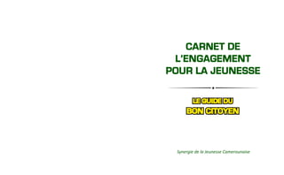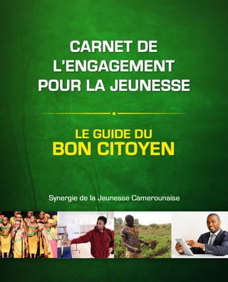 Le document présente le carnet de l'engagement pour la jeunesse au Cameroun, visant à promouvoir la participation active des jeunes dans le développement socio-économique et culturel du pays. La Synergie de la Jeunesse Camerounaise (SJC) propose des actions orientées vers la coopération, la responsabilité citoyenne et l'autonomisation des jeunes, tout en se distinguant par son organisation décentralisée. Il souligne également l'importance de l'engagement communautaire et économique pour faire face aux défis actuels auxquels la jeunesse est confrontée.