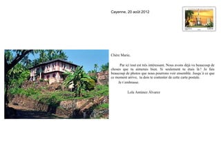 Le document présente des expériences de voyage en Guyane, décrivant des visites de la forêt, de la faune colorée, et des îles du Salut. Les narrateurs évoquent les défis liés à l'humidité et aux insectes, tout en partageant des moments de découverte et de convivialité. La communication en français facilite leur séjour, et ils expriment leur désir de prolonger les vacances loin du travail.