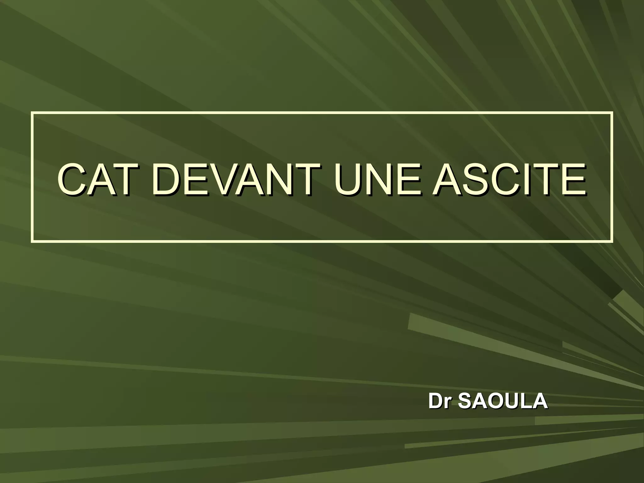 L'ascite est un épanchement liquidien dans la cavité péritonéale, pouvant résulter de diverses causes comme l'insuffisance cardiaque ou des maladies hépatiques. Le diagnostic repose sur un interrogatoire approfondi, un examen physique et des analyses du liquide d'ascite obtenue par ponction. Le traitement inclut des diurétiques, des ponctions évacuatrices et, dans certains cas, une transplantation hépatique.