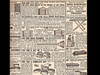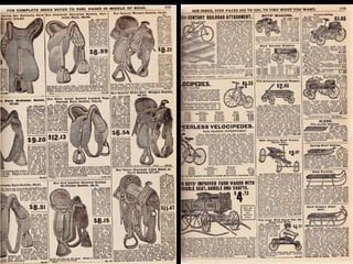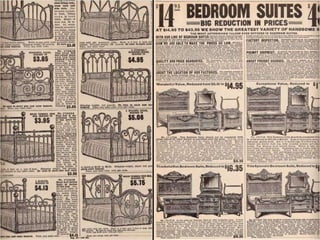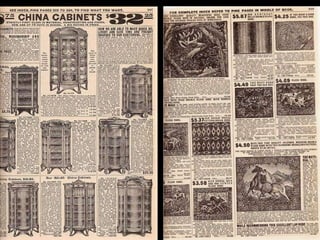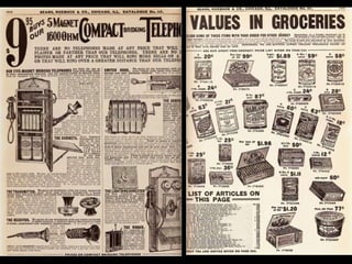 Ce document est une réplique du catalogue Sears de 1908, rééditée en 1963. Il présente des prix et promet de poursuivre les informations dans un prochain diaporama. Le document est partagé par un membre du groupe nidokidos, qui souligne que tous les droits sont réservés aux auteurs.