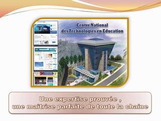 Le document présente 25 ans d'expérience d'un centre dans l'intégration des TIC dans l'éducation, couvrant des services variés tels que la gestion de projets, la fourniture d'accès à Internet, et la formation des enseignants. Des bénéfices significatifs sont soulignés, incluant 2 millions d'élèves connectés et 80 000 enseignants formés aux TIC. Le centre a établi des partenariats avec des entreprises renommées comme Microsoft et Cisco.