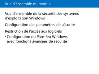 #28 Un des points clés que les stagiaires doivent comprendre sur ce thème est que les membres du domaine utilisent le profil de domaine. Seuls les membres n'appartenant pas au domaine, tels que les hôtes dans un réseau de périmètre, utilisent d'autres profils.