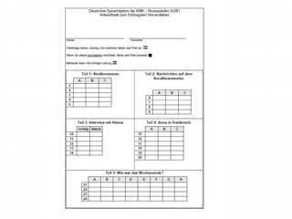 Le Deutsches Sprachdiplom (DSD) est une certification de langue allemande, accessible aux élèves étrangers âgés de 14 à 16 ans, visant à attester des compétences linguistiques aux niveaux A2 et B1. Cette certification, proposée dans plus de 60 pays, connaît une augmentation régulière du nombre de candidats, avec près de 50 000 inscriptions chaque année, dont une grande partie en France. Les épreuves évaluent quatre compétences linguistiques de manière équitable, et des diplômes sont remis en cas de réussite.