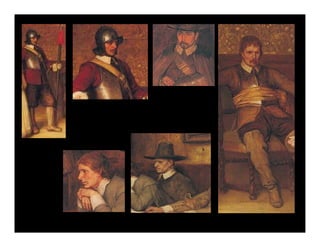 Le document traite des artistes et des œuvres de peinture d'époque, en se concentrant sur un tableau de 1878 et ses personnages. Il pose diverses questions sur l'identité et la situation des royalistes dans un contexte historique allant de 1650 à 1658. L'accent est mis sur les relations familiales et les affiliations politiques des personnages représentés.