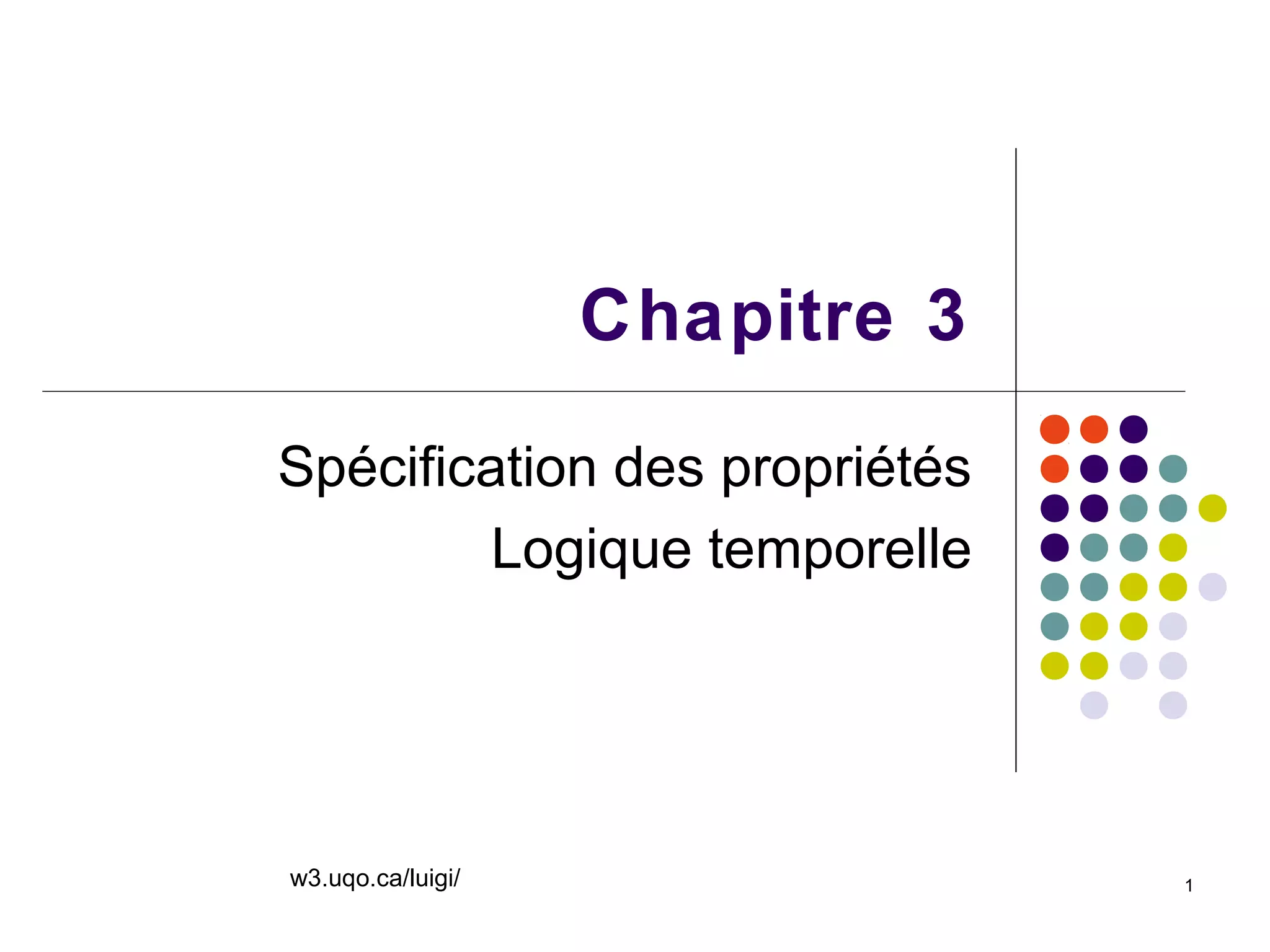Le document traite des logiques modale et temporelle, présentant leurs concepts et opérateurs principaux, ainsi que leur développement historique. La logique temporelle, introduite par Amir Pnueli en 1977, est utilisée pour exprimer des propriétés de systèmes évoluant dans le temps, telles que les propriétés d'invariance, de précédence et de vivacité. Enfin, le texte souligne l'importance des vérificateurs de modèles temporels dans divers domaines, au-delà de l'ingénierie des protocoles.