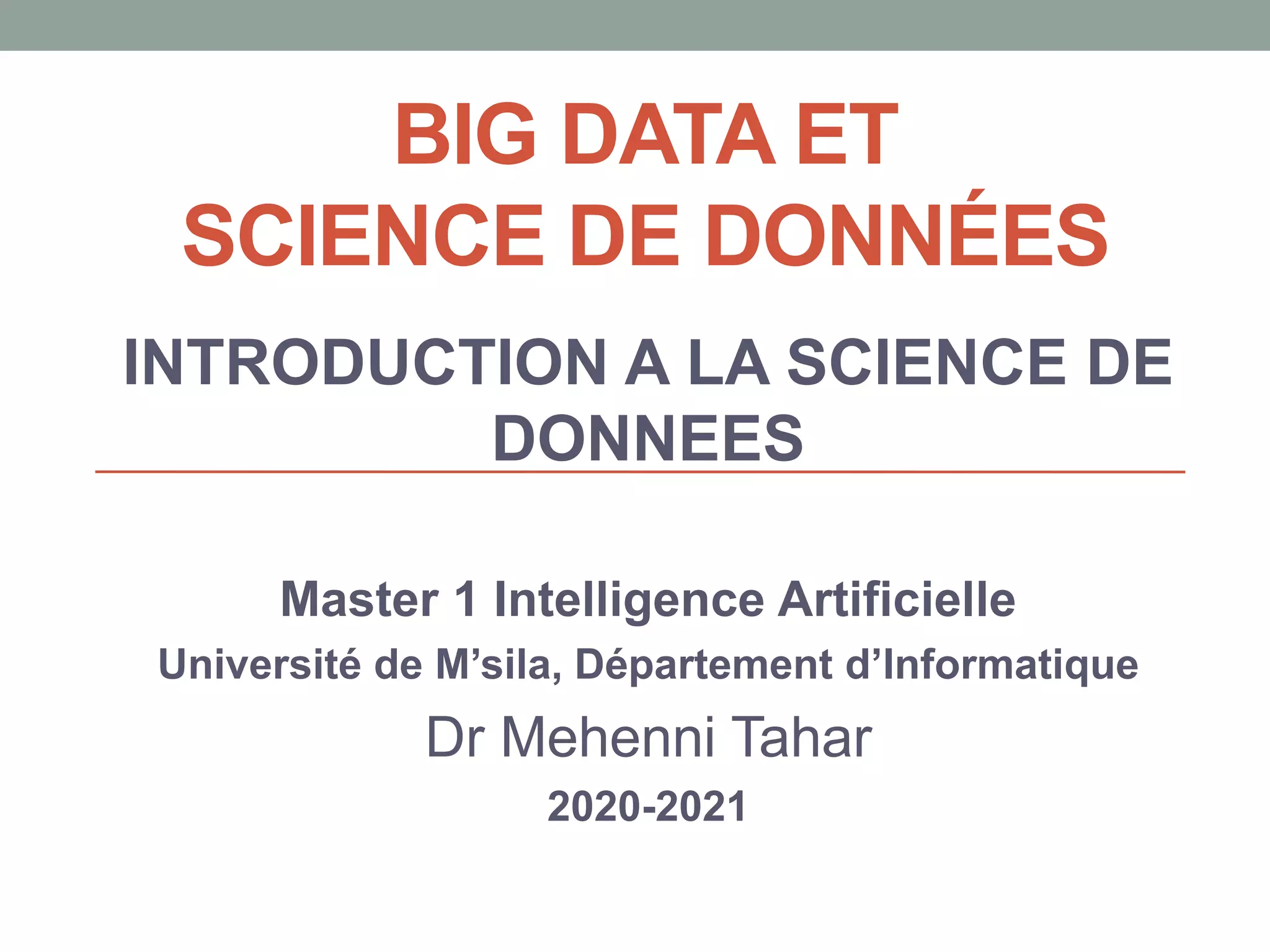 Le document présente une introduction à la science des données, abordant des concepts fondamentaux tels que le machine learning, les algorithmes supervisés et non supervisés, et des techniques de validation croisée. Il explique également la distinction entre régression et classification, ainsi que les méthodes d'évaluation des modèles, incluant la courbe ROC et les métriques de performance. Enfin, le texte traite des défis posés par les données de grande dimension et les valeurs manquantes, en proposant des solutions pour le traitement de ces défis.