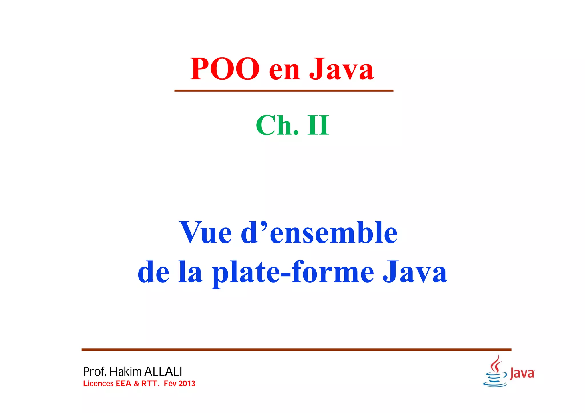 Le document présente une vue d'ensemble de la plateforme Java, de ses caractéristiques et de son évolution depuis sa création en 1995 par Sun Microsystems. Il décrit également les différentes éditions de Java, le processus de compilation et d'exécution des programmes, ainsi que les avantages et inconvénients du bytecode et de la machine virtuelle Java. Les statistiques montrent que Java est largement utilisé dans divers domaines, avec une communauté de millions de développeurs à travers le monde.