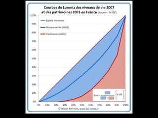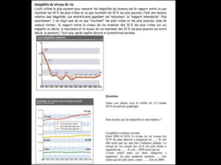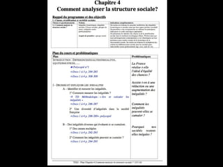 Le document analyse la structure sociale à travers la croissance, la stratification et les inégalités. Il présente des théories sociologiques, notamment celles de Marx et Weber, et discute des outils pour mesurer les inégalités économiques, telles que les déciles et l'indice de Gini. Enfin, il aborde la question de la mobilité sociale et les dynamiques de conflit dans les sociétés contemporaines.
