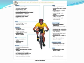 Le chapitre aborde les bénéfices de l'entraînement cardiorespiratoire, incluant l'amélioration des fonctions pulmonaires et cardiaques, ainsi que la réduction des risques de maladie. Il décrit divers tests pour évaluer l'endurance cardiovasculaire et comment déterminer la fréquence cardiaque cible pour un entraînement efficace. Enfin, il présente des méthodes de calcul pour établir des objectifs d'entraînement personnalisés.