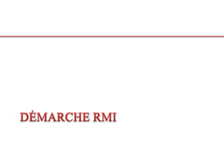 Le document décrit le processus d'invocation de méthodes d'objets distants via RMI (Remote Method Invocation), incluant la création, la publication, et la récupération de références d'objets distants. Il explique également la nécessité de créer des interfaces, des implémentations, ainsi que des stubs et skeletons, tout en respectant certaines conditions comme l'héritage de classes spécifiques et la sérialisation des objets. Des étapes précises pour le déploiement de services RMI sont fournies, y compris le démarrage du service d'annuaire et l'appel de méthodes distantes.