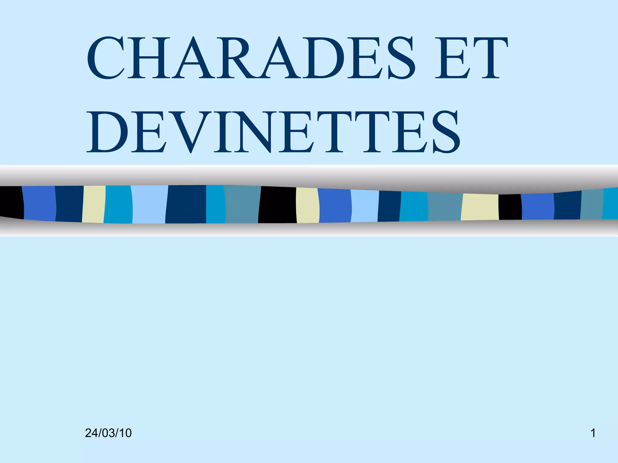 Le document présente une série de charades et devinettes humoristiques, avec des énigmes et leurs réponses. Chaque devinette joue sur des jeux de mots et des associations d'idées. La dernière énigme propose une situation logique avec des enfants traversant une rivière.