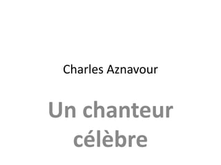 Charles Aznavour, né le 28 mai 1924, était un chanteur célèbre et talentueux, connu pour ses chansons telles que 'La Bohème' et 'Embrasse-moi'. Il était également acteur et auteur-interprète. Son œuvre et son style musical ont marqué l'histoire de la chanson française.