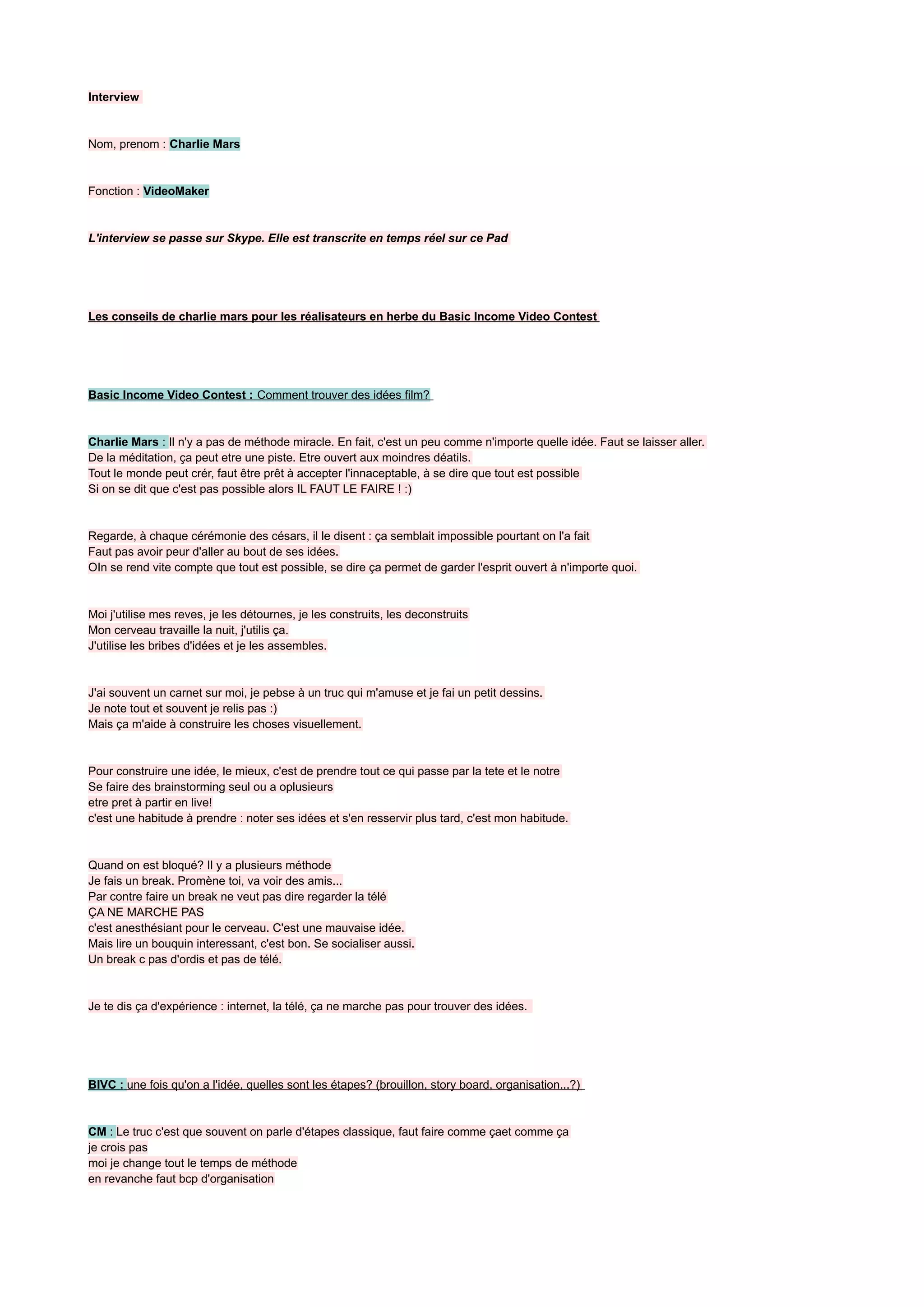 Charlie Mars donne des conseils aux jeunes réalisateurs pour le Basic Income Video Contest, soulignant l'importance de la créativité et de l'ouverture d'esprit dans le processus de création. Il recommande de noter ses idées, d'organiser son projet de manière structurée tout en restant flexible, et d'être attentif à la lumière et au son lors du tournage. Pour qu'une vidéo devienne virale, Mars suggère de créer naturellement sans chercher à suivre des tendances, en visant à surprendre et à toucher un public universel.