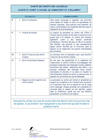 La charte des droits des accueillis de l'hôtel social Saint-Yves définit les droits fondamentaux des personnes accueillies, notamment le respect de leur dignité, le droit à l'autonomie, à l'information et à la protection. Le centre s'engage à accompagner les accueillis vers l'autonomie en respectant leurs projets de vie, tout en garantissant un cadre sécurisant et respectueux de leur identité. Les accueillis ont également le droit de mettre fin à leur hébergement et d'exercer leurs droits civiques et religieux dans le respect des règlements internes.