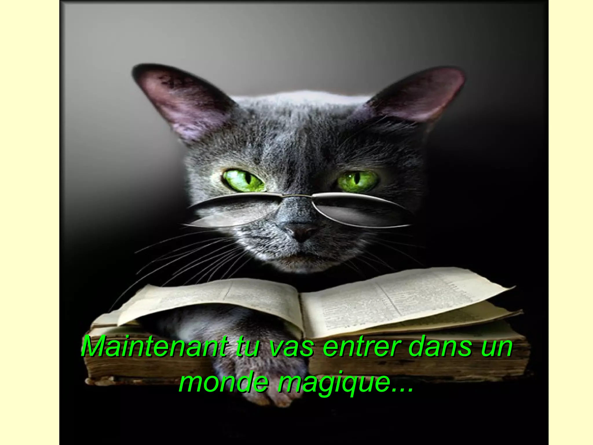 Le document présente une expérience interactive où le lecteur est invité à choisir une carte tout en regardant les yeux d'un 'chat magique'. L'illusion suggère que le chat peut deviner la carte choisie sans la voir. Cela se termine par une invitation à partager l'expérience avec des amis.