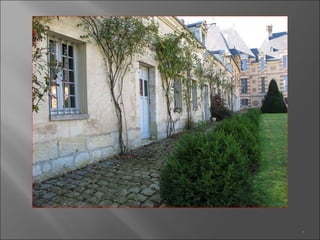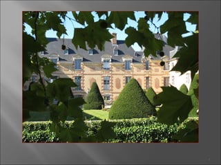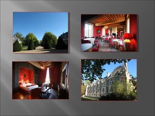 Le document présente un château historique du début du XVIIe siècle à Paris, offrant de somptueuses pièces de réception, dont une de 450 m2, et 32 chambres avec salles de bains. Il dispose également de douves sèches, d'une cuisine professionnelle, d'une piscine intérieure et d'un court de tennis sur environ 20 hectares de parc. Des travaux significatifs ont été réalisés, incluant la rénovation des toitures et du système de chauffage.