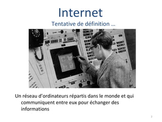 Le document présente une introduction au réseau Internet et aux outils de recherche d'information, en définissant des concepts clés tels que le World Wide Web et le rôle des navigateurs. Il décrit également comment utiliser efficacement un moteur de recherche en multipliant les mots-clés, en utilisant l'autocomplétion et en corrigeant les fautes. Enfin, il fournit des conseils sur l'organisation des sites web préférés et le téléchargement de documents.