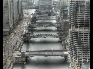 Le document présente des informations sur l'État de l'Illinois, notamment sa population de 2,8 millions d'habitants, et met en avant des lieux emblématiques de Chicago comme le Millennium Park et le Soldier Field. Il mentionne également des événements et attractions comme la colorisation de la rivière Chicago pour la Saint-Patrick. Des éléments visuels accompagnent les descriptions sous forme de présentation PPS.