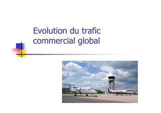 Le document présente l'évolution du trafic commercial à l'aéroport Metz Nancy Lorraine entre 2009 et 2010, avec une baisse générale du nombre de passagers et des mouvements commerciaux, tandis que le fret aérien a connu une hausse significative. Les vols réguliers ont légèrement augmenté, mais les vols vacances ont diminué de 4,54 %. La répartition du trafic indique une majorité de vols internationaux, avec une prédominance des compagnies comme Air France et Air Algérie.