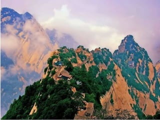 Le document évoque des sites emblématiques de la Chine, incluant les terrasses de Baishui et des monuments comme la réplique de la tour Eiffel et la Grande Muraille. Il mentionne également des structures modernes à Shanghai, telles que la Pearl Tower et le Shanghai World Financial Center. Enfin, Beijing et Hong Kong sont représentés avec des lieux notables comme l'Opéra et le pont de Donghai.