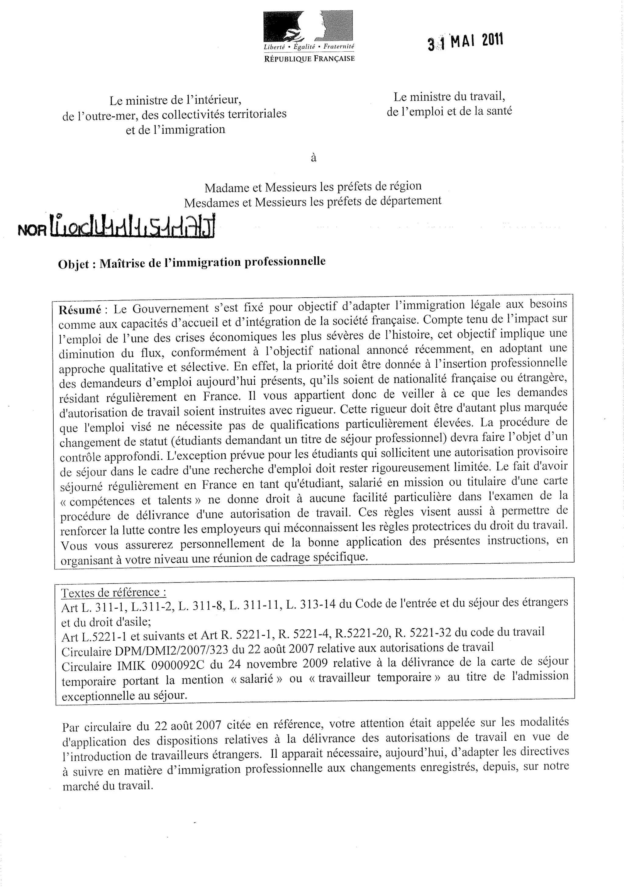 Projet décret 10 novembre 2011