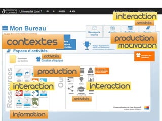Le document présente divers liens vers des ressources multimédias, des outils de gestion et collaboratifs, ainsi que des informations concernant l'intégration de Claroline Connect à Lyon 1. Il évoque la création de vidéos riches pour l'éducation et les conditions d'utilisation sous licence Creative Commons. Il comprend également des détails sur la participation à des réunions de développeurs autour de ces thèmes.