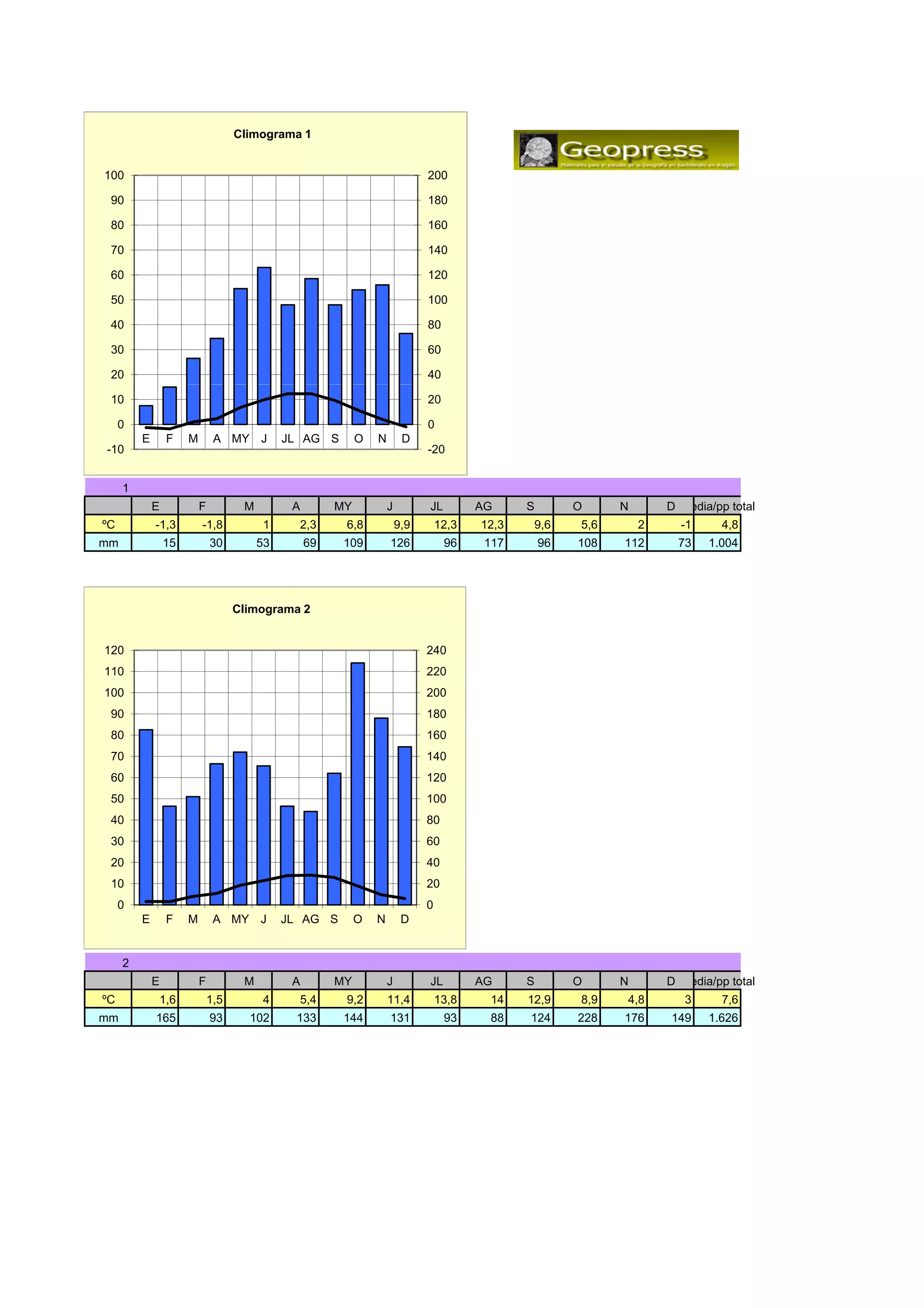Le document présente une série de climogrammes montrant les variations mensuelles de précipitations et de températures sur plusieurs mois. Chaque climogramme est accompagné de données sur les précipitations en millimètres et les températures moyennes. Ces informations sont utiles pour analyser les tendances climatiques sur une période donnée.