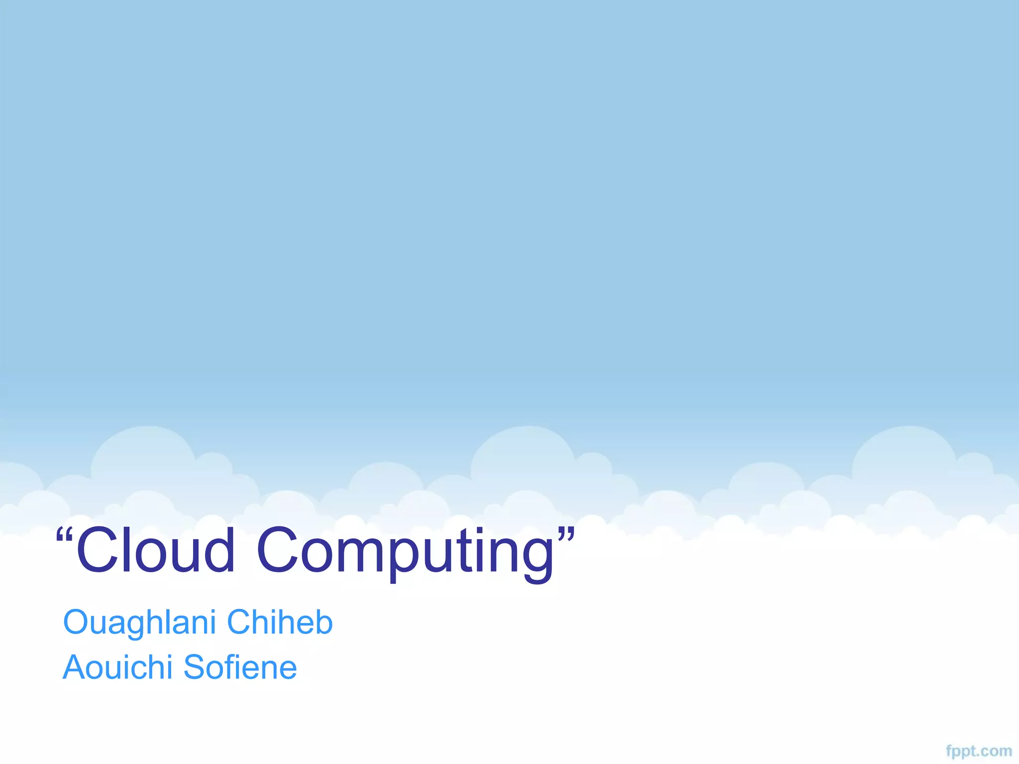Le document présente le cloud computing comme une externalisation des ressources informatiques, permettant un accès évolutif à des services en ligne. Il décrit l'historique, les modèles de services (SaaS, PaaS, IaaS) et les différentes formes de cloud (public, privé, hybride, communautaire). Bien que le cloud offre des avantages tels que la haute disponibilité et une allocation dynamique des ressources, il soulève également des préoccupations en matière de sécurité et de confidentialité des données.