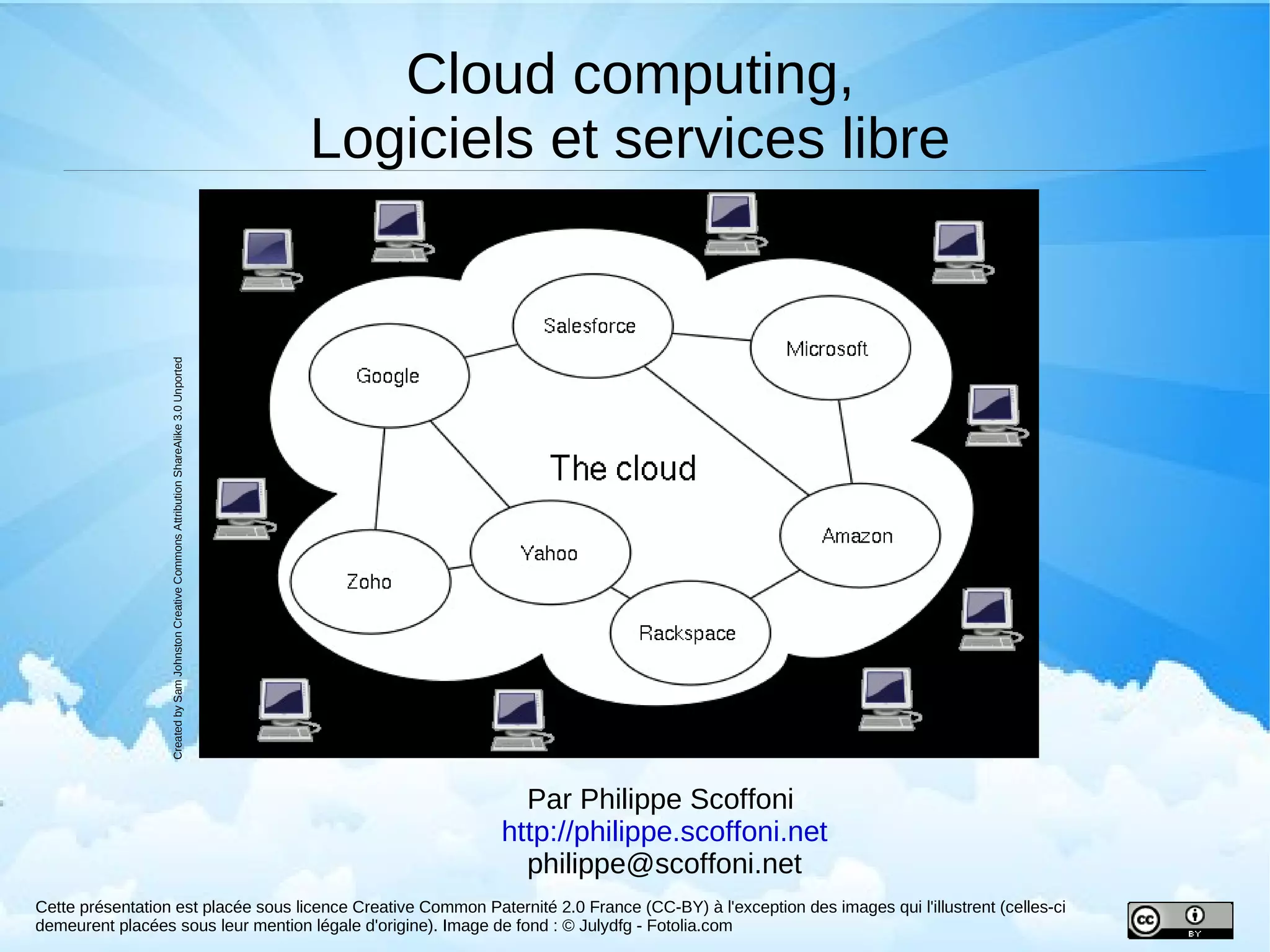 Ce document explore le concept du cloud computing et son rapport avec les logiciels libres, en fournissant un état des lieux des acteurs et des tendances du marché ainsi qu'une analyse des avantages et des inconvénients associés. Il aborde également les alternatives comme l'auto-hébergement et les implications de l'évolution vers un modèle ouvert et interopérable. En conclusion, le texte appelle à une réflexion sur l'utilisation des services cloud et la nécessité de préserver la souveraineté des données.