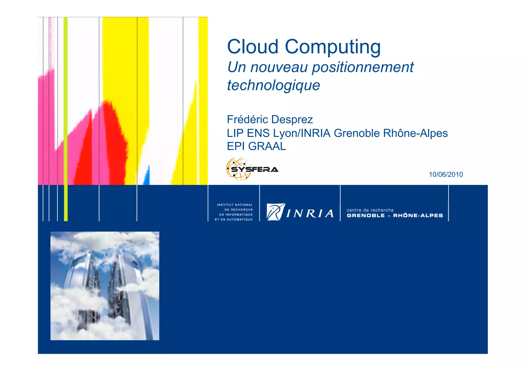 Le document présente le cloud computing comme un paradigme de calcul distribué offrant des services de stockage et de traitement de données via des data centers accessibles via Internet. Il aborde les différents modèles de services (IaaS, PaaS, SaaS), les concepts de virtualisation et d'élasticité, ainsi que les défis de sécurité associés à cette technologie. En conclusion, malgré certains obstacles, le cloud computing offre un potentiel significatif pour diverses applications et une gestion efficace des ressources.