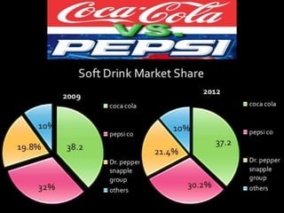 The Coca-Cola Company is the largest beverage corporation, manufacturing over 500 brands and serving 1.7 billion servings daily across 200 countries. It focuses on aggressive marketing, extensive acquisitions, and expansive product offerings, while also emphasizing corporate social responsibility initiatives. Despite being a market leader, it faces competition, particularly from Pepsi, and must navigate challenges related to public perception and slow decision-making processes.